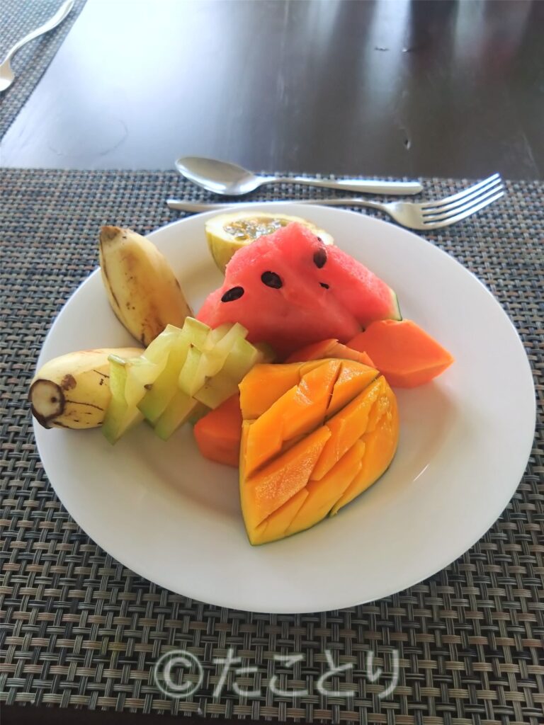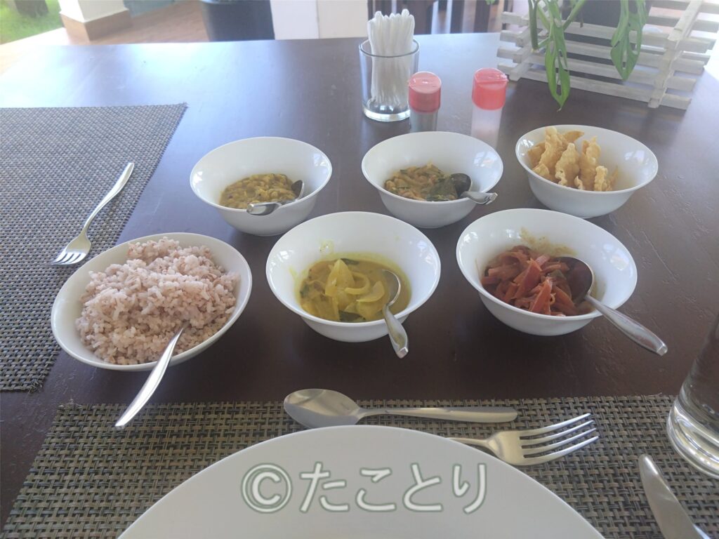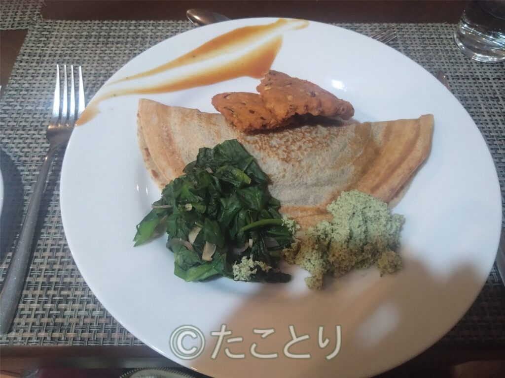 そして、シロダーラ中の定番のお昼寝をしてその後、海岸沿いをお散歩。お夕飯はワーイパンケーキ\(^O^)/と思いきや中はカレー。。。夕飯は火を通した物という掟なので果物もいつも焼いてあってココナッツシロップが掛けてあります。