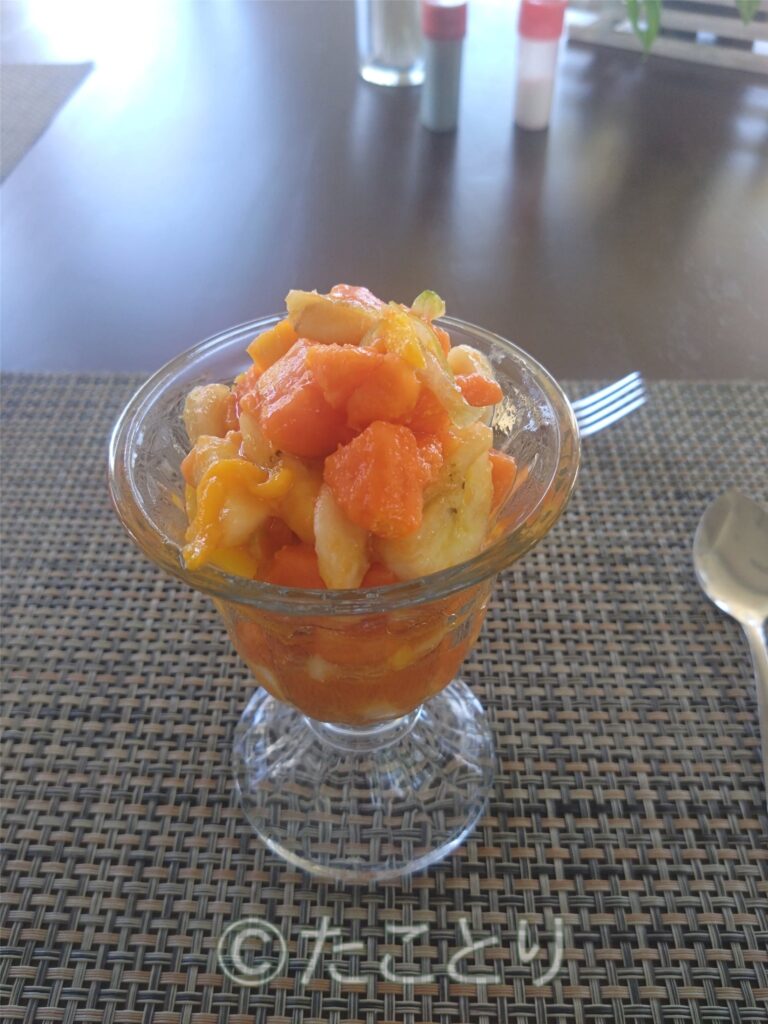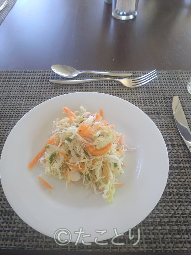 お昼はフツーにキャベツと人参のサラダと各種野菜カレーとフルーツサラダ。