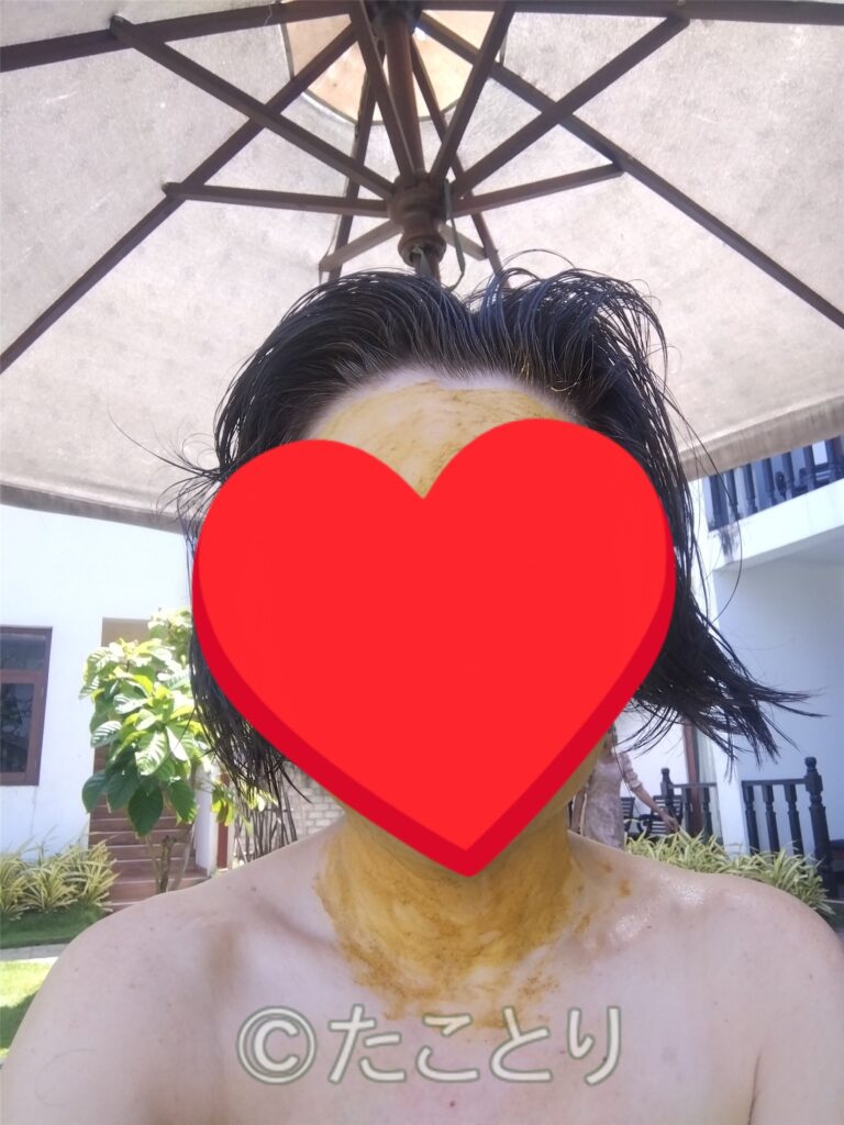 で、カレーの国なのでここに来て初めてのパックもカレー色と匂いもそうでした。