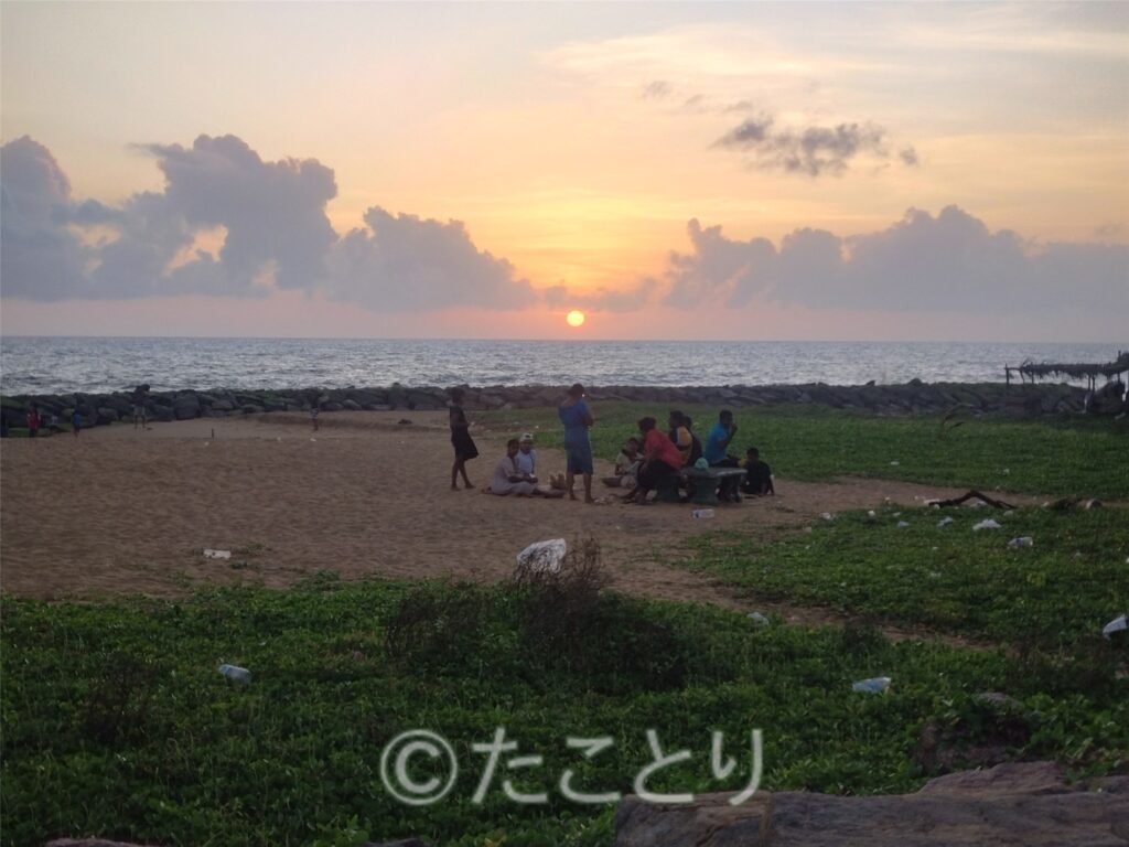 そして綺麗な夕日の海と地元の人々。