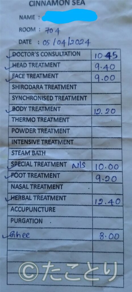 そして、そのギーを飲んでからどのように過ごすかの説明文はドイツ語のみ!です。。。ま、ドクターから英語で説明はありますが、どんだけドイツ人がこのホテルに多いのか解りますよね。。。