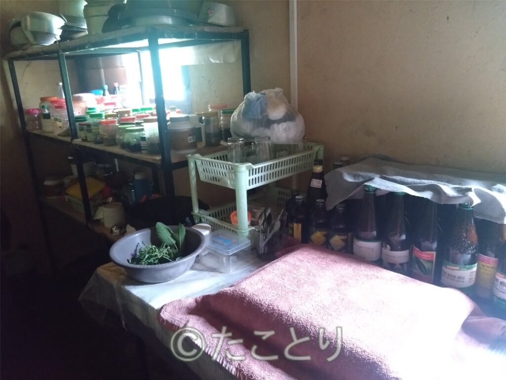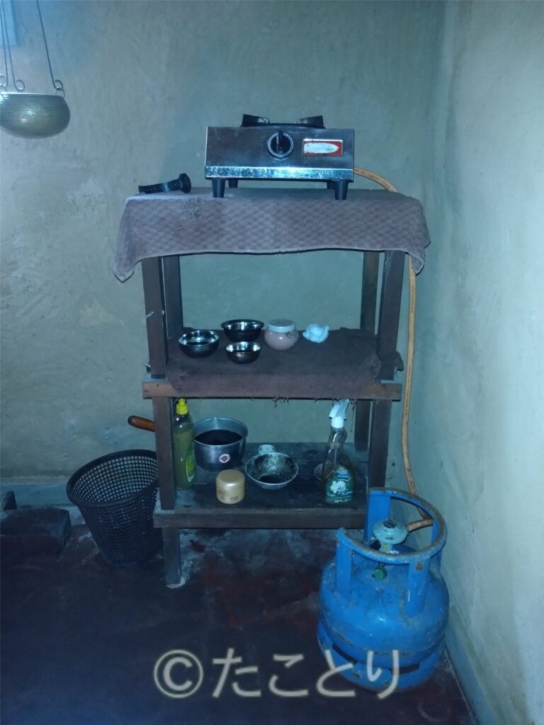 中の施術室は両側で合わせて6部屋あります。ガスコンロでマッサージ用の油を温めます。