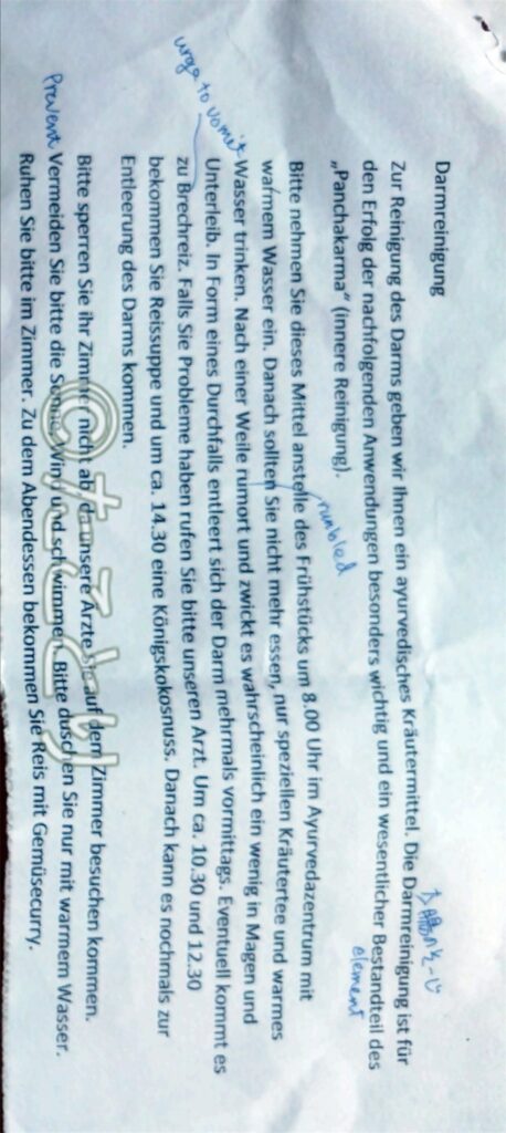 暫くしてからドクターがお部屋まで様子見に来てくれました。ほぼ空っぽになった頃合いで下のようなお薬を再度服薬して、その後お粥がお部屋まで届けられました。
