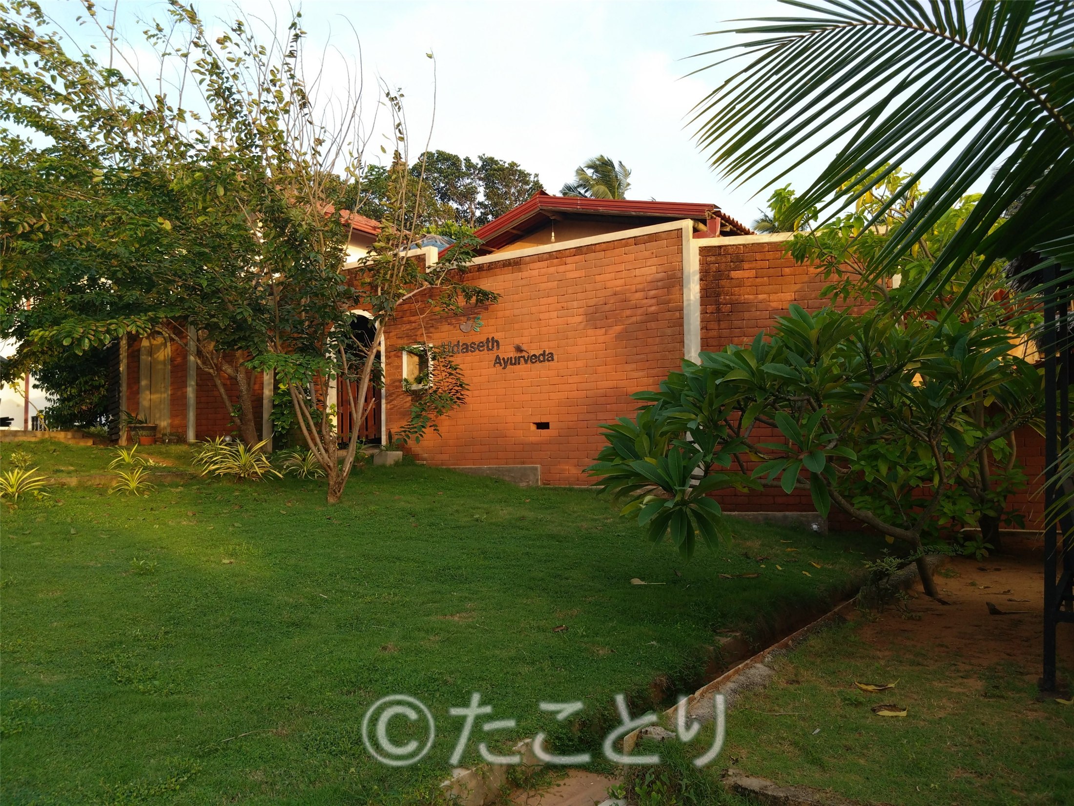 朝食無しで8時に施設内のアーユルヴェーダセンターへ行きます。で、今回はちょっとアーユルヴェーダセンターをご紹介。施設の中はさすが仏教の国で仏陀像が鎮座。そういえば初日に仏様にお祈りしつつドクターから一緒に白い糸を手首に巻いて貰いました。水桶には毎日違うお花が浮かんでいます。