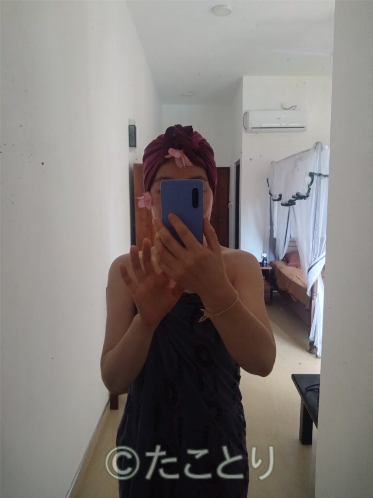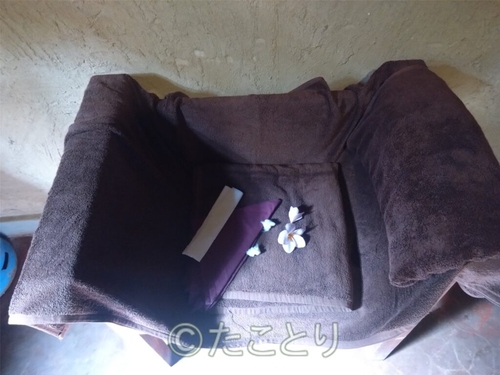 そして今日はシロダーラを手伝ってくれる人が変更になったのでちょっと違う感じに飾られています。そしてこのピンクのお花が香りがあってとてもいい匂い。