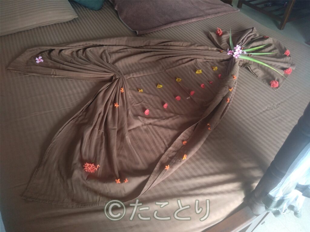 そして今日も又ホント、気分を上げさてくれるシーツの飾り付けとトイレットペーパーの折り紙。