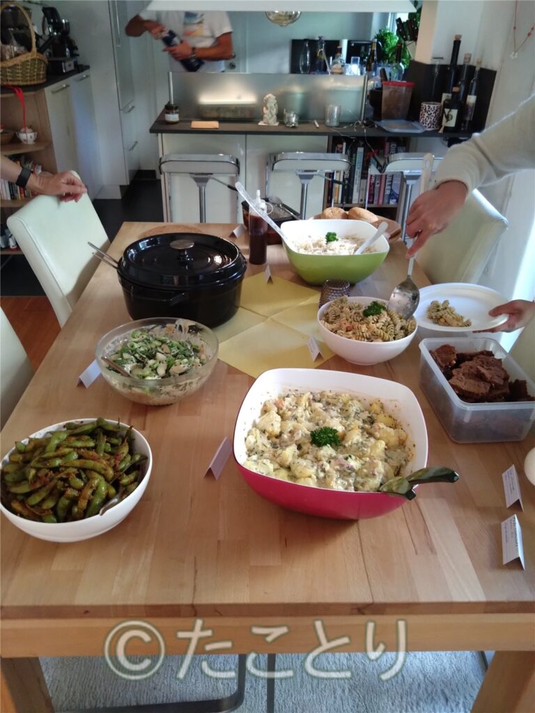 そしてドイツあるあるケースなのですが旦那さんが食事を作る役割を担っています。とても平等で私が欧州に居続ける好きな部分の一つです。あ、でも私は料理好きなので自分がご飯作りを担うのが好きですけどね😉。とまぁそういう訳で旦那さんがメインシェフで奥様はそれをサポートしてお二人で用意です。左の写真がワンプレートランチでコーヒーもエスプレッソマシンからの凝ったものでした。