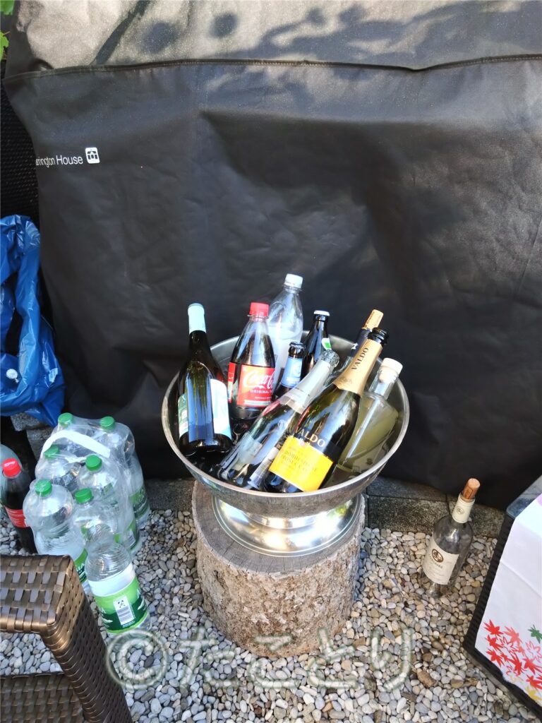 又、お庭では各種飲み物が用意されかなりの人々が来て寛いでいます。