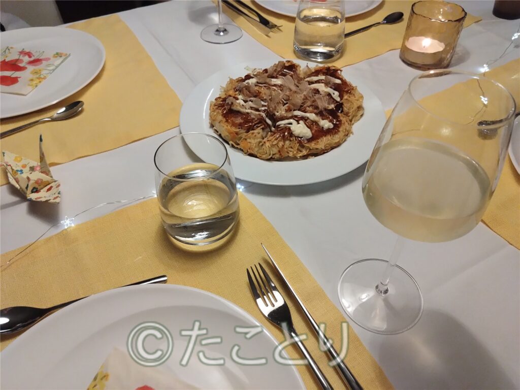 そして2回目は日本からの留学生を受け入れた際に彼がお好み焼きを前菜として作って、