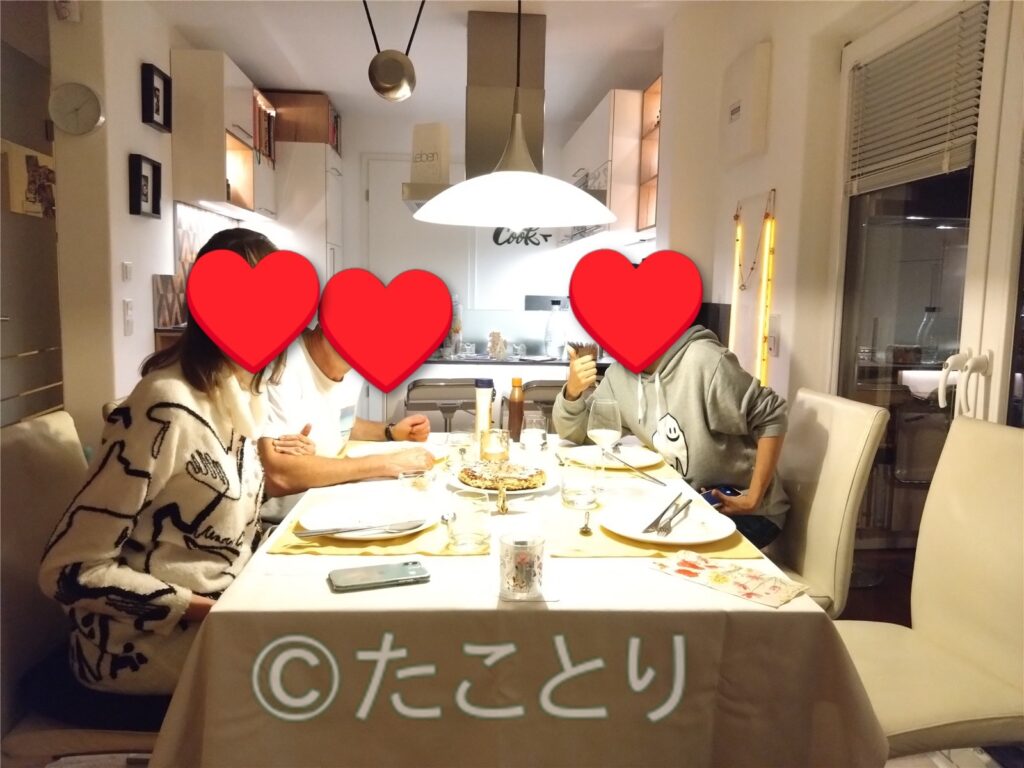 今回は私の独和の語学交換の相手で、偶然自宅が近くなので、度々お宅にご飯に呼んで頂いている際のお話です。ここでちょっとこのご夫婦を紹介。奥様は世界4大会計事務所の一つに以前勤めていたキレキレッの才女で、旦那様は言わずと知れたドイツシーメンス社でマネージャーをしていて今はドイツの認証機関Tüvで働いていらっしゃるインテリカップルです。ここで付け加えたいというか強調したいのが、今年40年記念を迎えるそうなのですが、とってもラブラブなカップルでホント写真のようにハート💞が行き交っているのが見えるようなのです。一昨年、語学交換サイトで偶然出会ってその年の自分の転職に大変お世話になった🙇🏻♀️🙏🏻という経緯がありまして仲良くさせて頂いています。