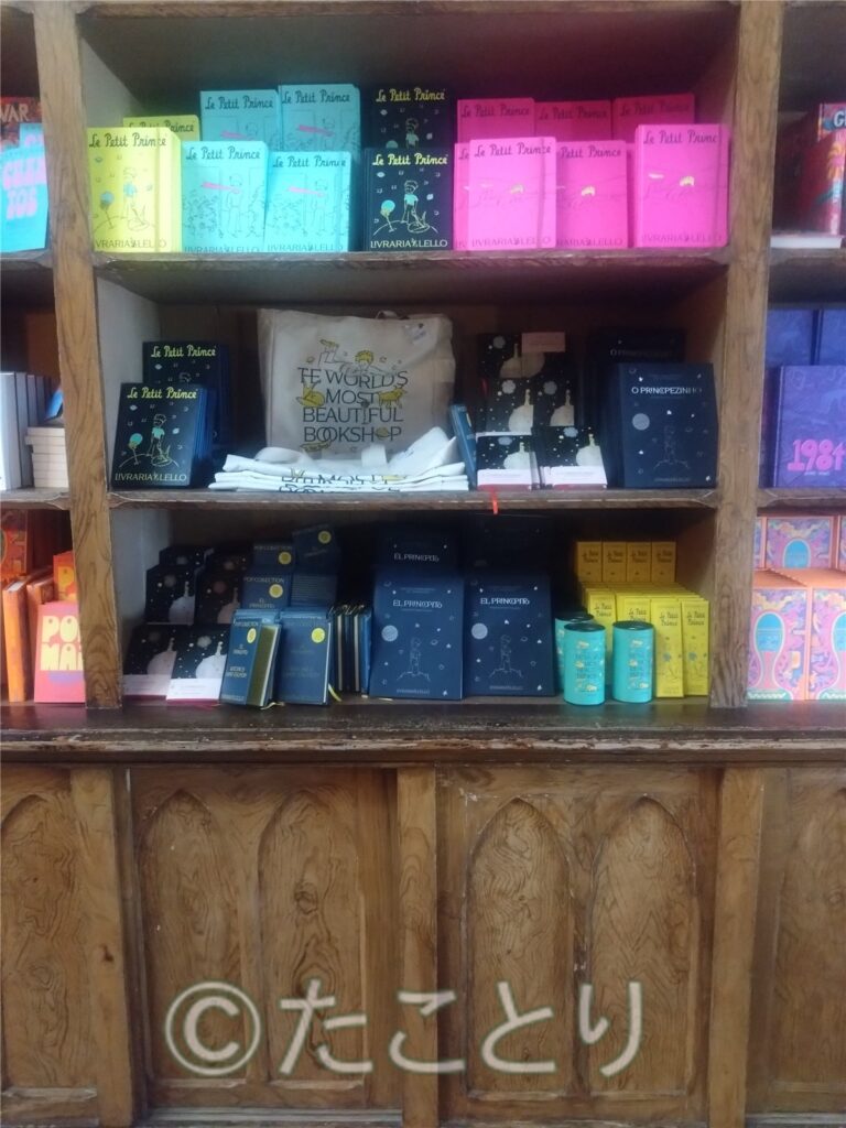そしてシャレているなと思いましたのが、チケット代が一冊の本代を含んでいて、その金額の小さい本を買っても、又それにお金を足して置いてある本を購入しても良いという事になっています。ポルトガル語だけでなく、欧州各国語の本が置いてあります。それで日本語の本があるか試しに聞いてみたのですが、残念ながらありませんでした。。。写真はこの本屋さんを有名にしたハリポタの本棚とやはりこの本「星の王子様」、私も大好きで何度も読み返している、世界で一番翻訳され、購読されている名作がこの本屋さんの特装版としてポルトガル語や英語版又オリジナルのフランス語版も置いてありました。