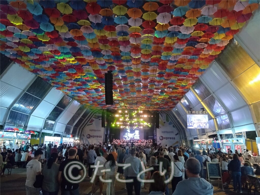 夜はお祭りの期間中は毎晩やっている音楽コンサートへ。会場にはやはり綺麗に傘が飾ってあって気分が上ります✌🏻。しか〜し、さすがに盛り沢山過ぎて疲れましたのとちょっと趣味ではない音楽バンドだったりしてさっさとホテルに帰りました。。。