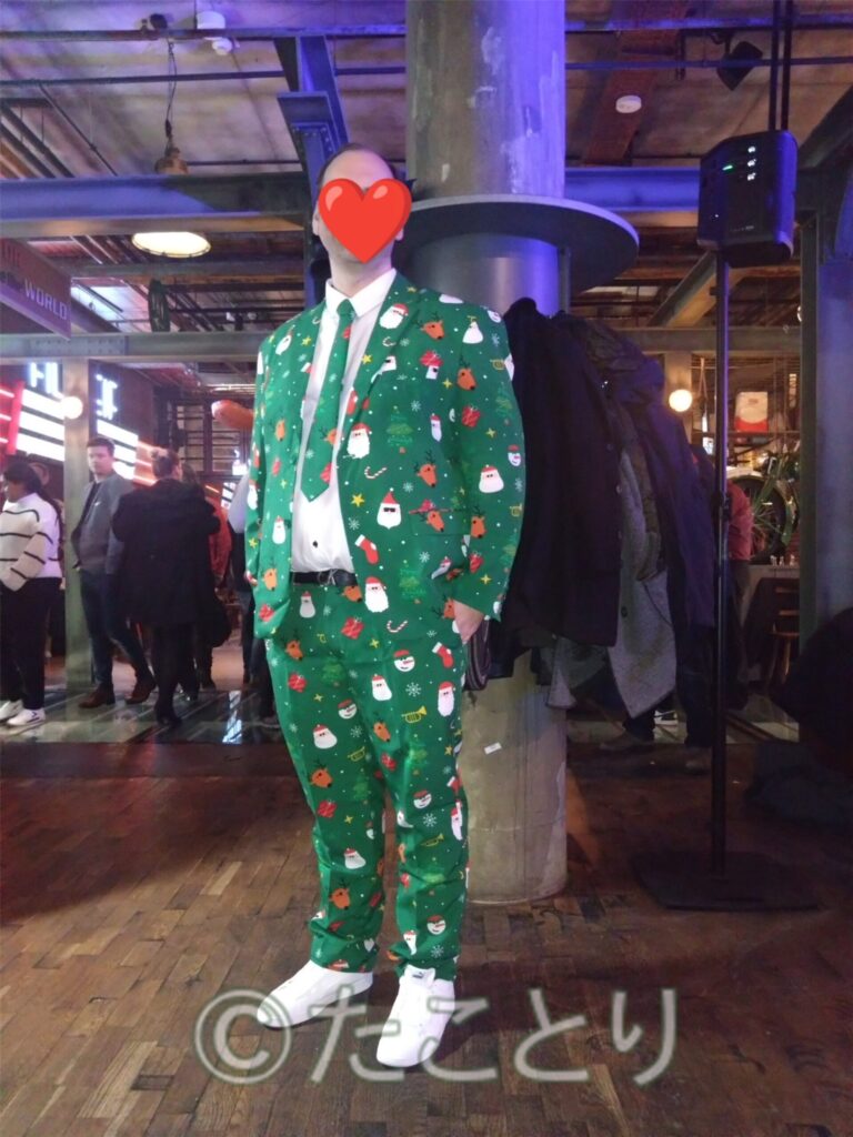 左は総務の人で上下クリスマス柄のかなりハーデーな衣装。そしてウチのイケメン社長からのスピーチを皆で聞きます。