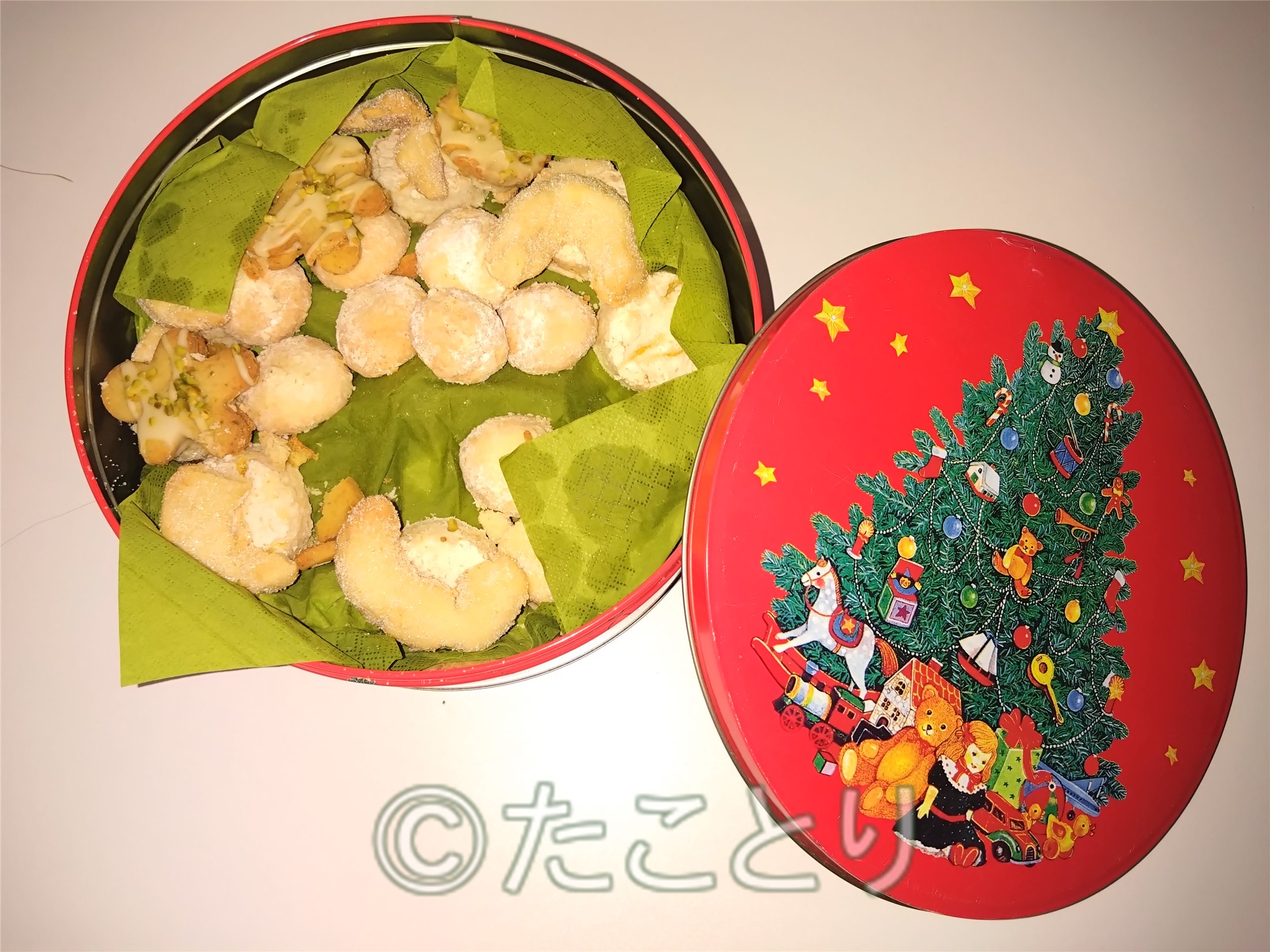 今回はドイツのクリスマスの時期の様子と会社のクリスマスパーティのお話をお届けします。上の写真は同僚の奥様が10日間かけて焼いた色々な手作りクッキーを皆でと持って来てくれた缶です。コレもクリスマス時季のコチラの習慣です。