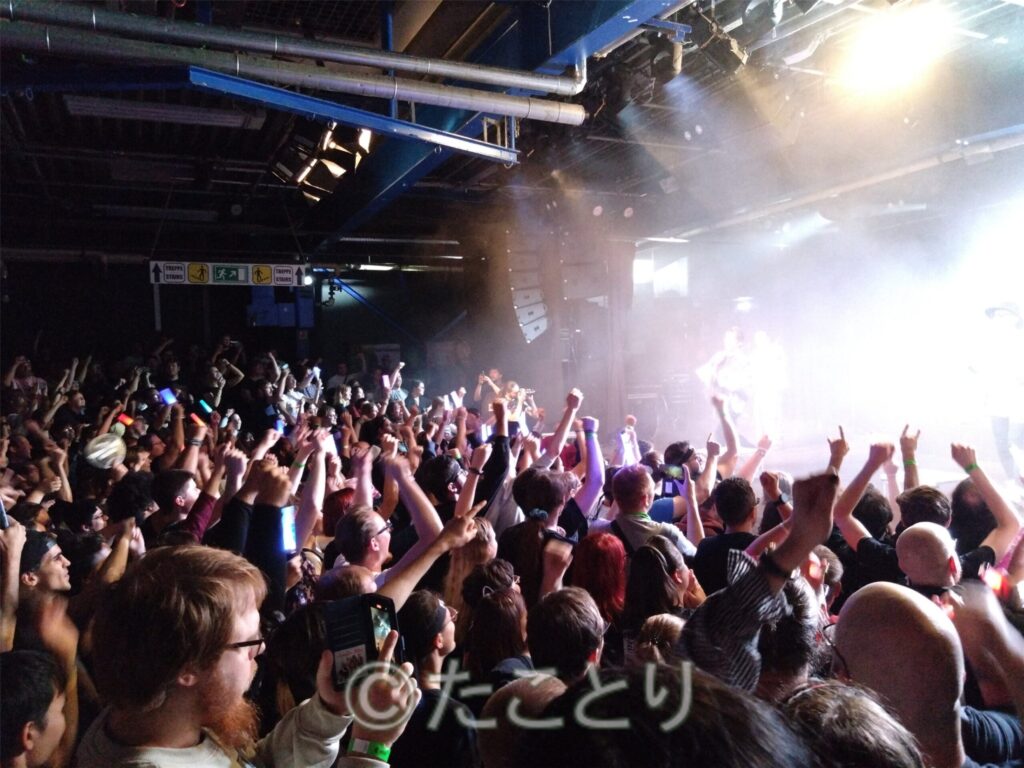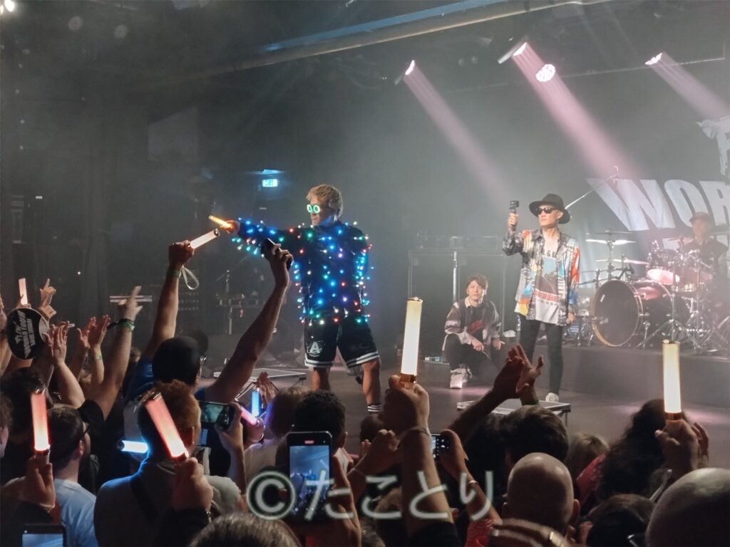 と、対比してバンドの人はかなり年季の入った人々です。なので動きも精々低い台からステージにジャンプするくらいがやっとで、同じ日本人としてはちょっとハラハラ。