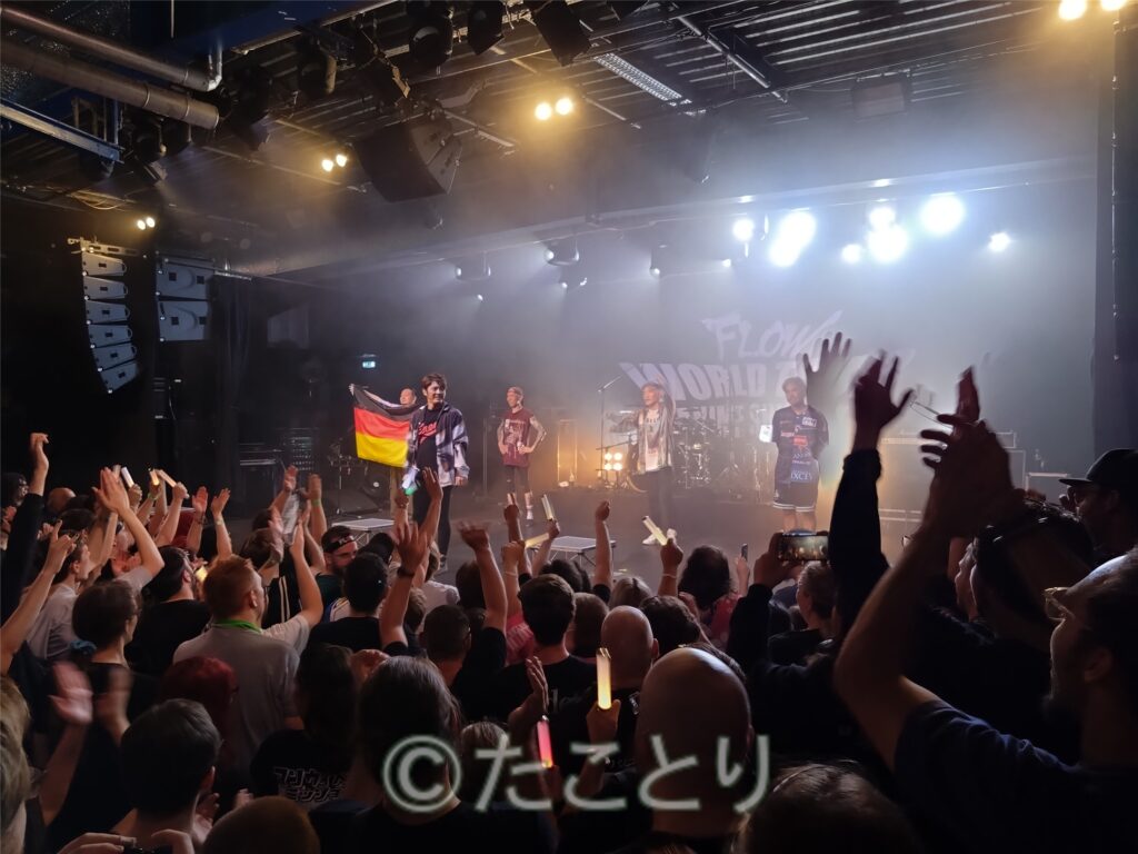 先週、中国人の日本に住んでいたことがある友人に誘われて一緒に日本のアニメの歌を歌う日本人バンドのコンサートへ行って来ました。Flowという名前で、ハッキリ言って私はマッタコ知らんがなでしたが、日本人のバンドがドイツ、ミュンヘンでどのように受けるのかを見てみたいという興味本位。又、このライブ会場が埋まらず前の方でアットホームな感じで見れるのかもと思っていたりしていたのですが、その友人と待ち合わせしてたので早めに脇前に入っておりました。