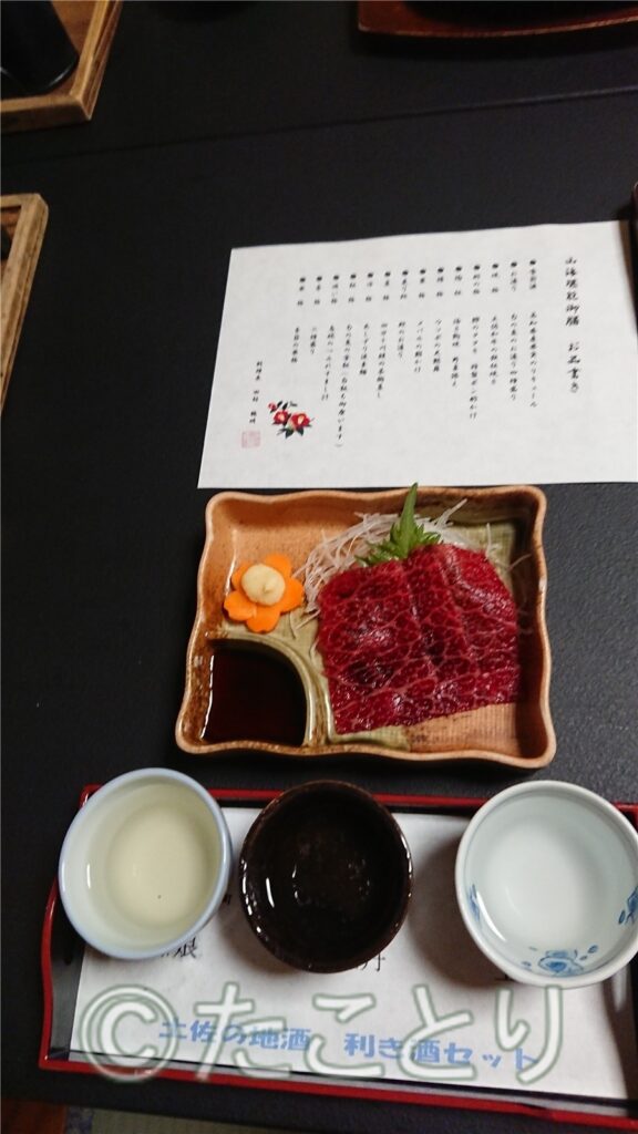 Again and again the dishes were come(sorry i forgot to take all the pictures), so we also tasted regional Sake as centre photo. We entirely enjoyed Tosa(old name Kochi) taste with swollen belly😅.