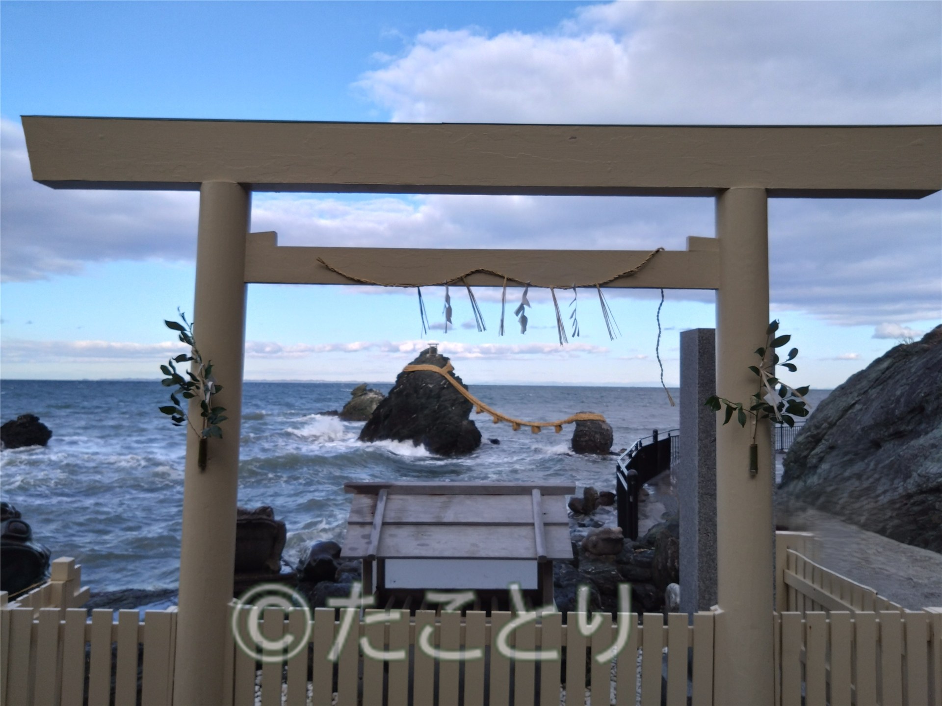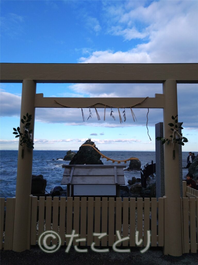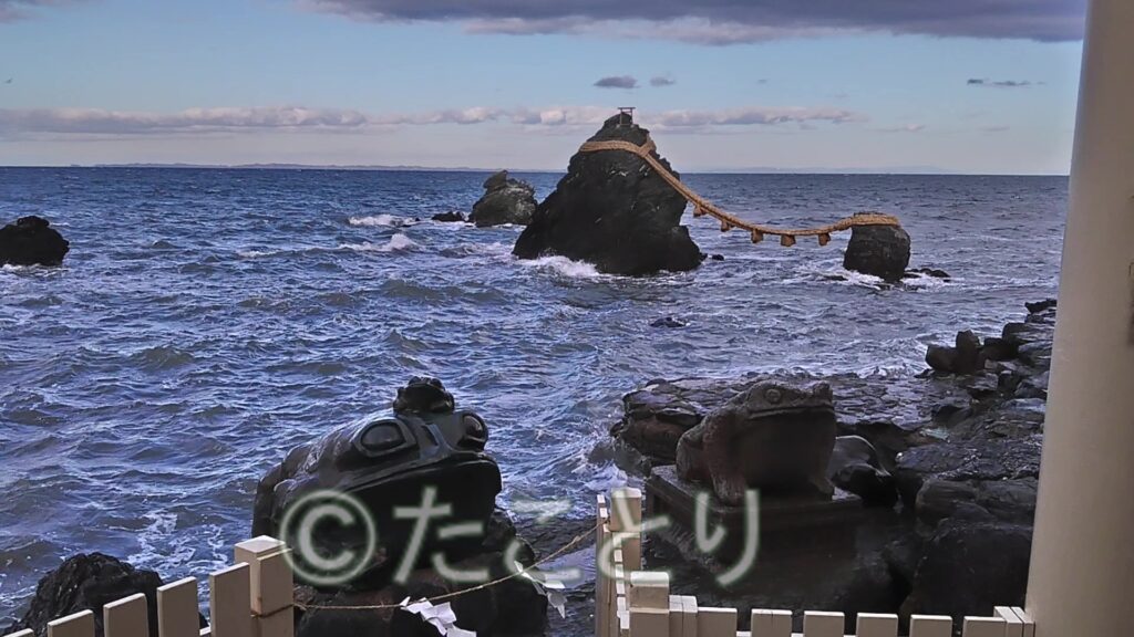 Our first day was as like former time’s idea, doing Misogi: cleaning the body by water before visit Ise shrine, Ok not possible now but just visiting another shrine: Futami-okitama jinjya(=shrine), along to the sea. It’s famous for the couple rock in the sea as photo.