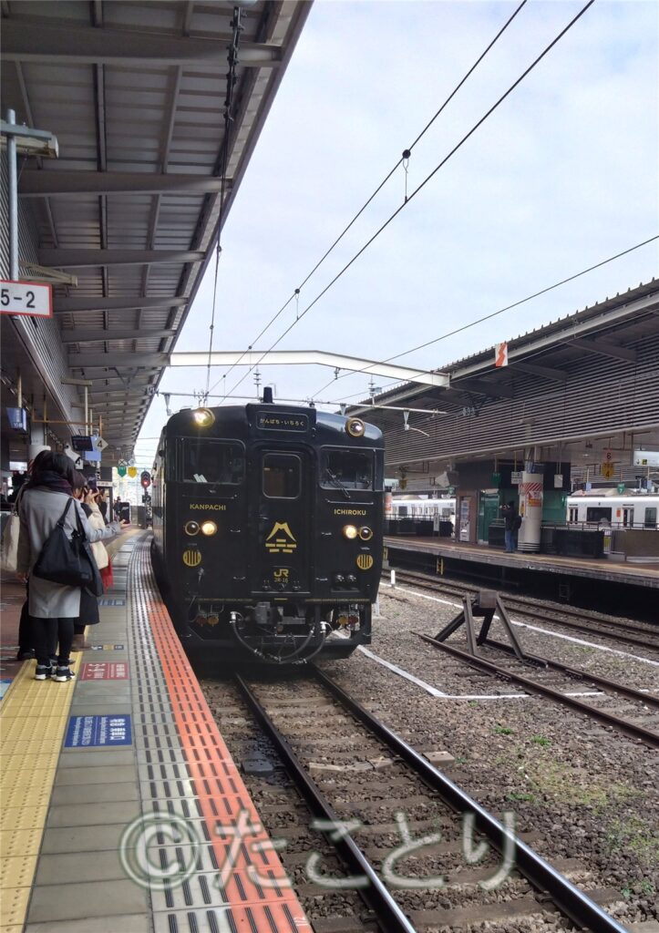Now, it comes another main train 🚆 trip. The local special decorated train runs from Hakata to Beppu.There are some histories on behind but I just would like to introduce this special train’s inside, their organising station events and Ekiben: local lunch box by following photos.